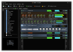 While Calf does have its own plugin host, Erich found a very effective alternative to MultiRack called Carla, which includes a graphical patchbay in order to route plugins to DAWs or inputs and outputs on whatever audio interface is connected.