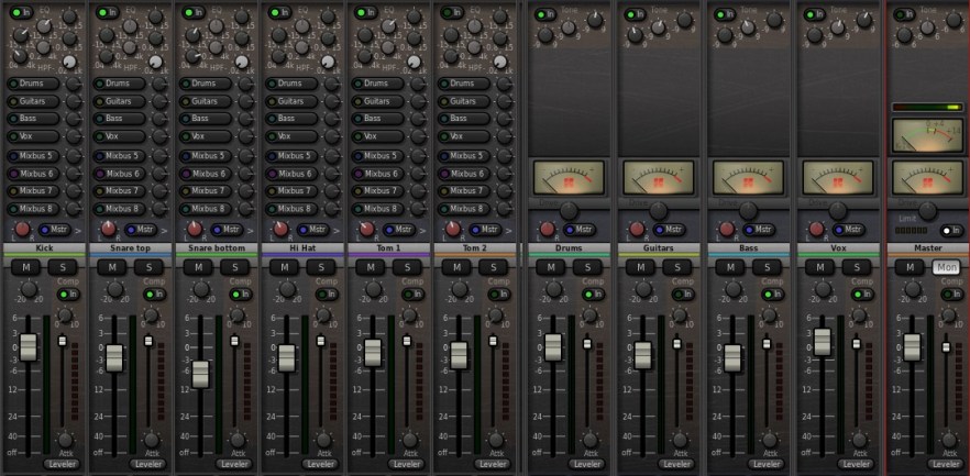 Realizing this, he began recording using Ardour, and discovered its mixing capability and plugin hosting format. He realized that Ardour, combined with the JACK audio connection kit and an audio interface, made a decent audio mixer on its own as long as the latency could be reduced to minimum. With that, Erich started using Ardour as an outboard mixer utilizing a midi control interface as its controller.